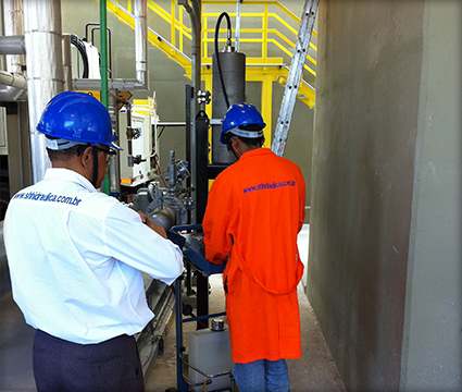 Simula-se então uma condição operacional mais rigorosa, objetivando a garantia de que em serviço normal (a pressões mais baixas) não ocorrerão falhas ou vazamentos. Na grande maioria das vezes é utilizada a água como fluido de teste de pressão (teste hidrostático, TH), em virtude de: - grande disponibilidade em indústrias de processamento;